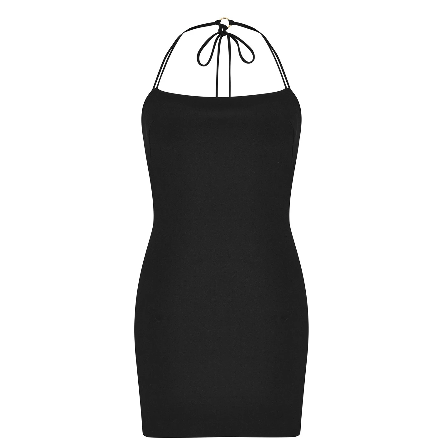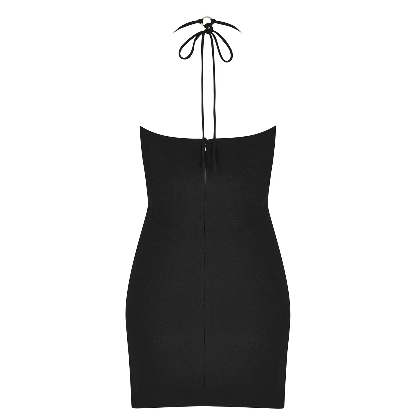 Update your collection with the Adele Mini Dress from Bec and Bridge. In a strapless cut accentuated by self tie halter-neck ties, this dress is cut to a mini length and figure hugging fit to create a chic and sultry style. Made from a thick stretch bonded crepe with a rear zip, this dress is finished with a gold O-ring detail joining the ties.