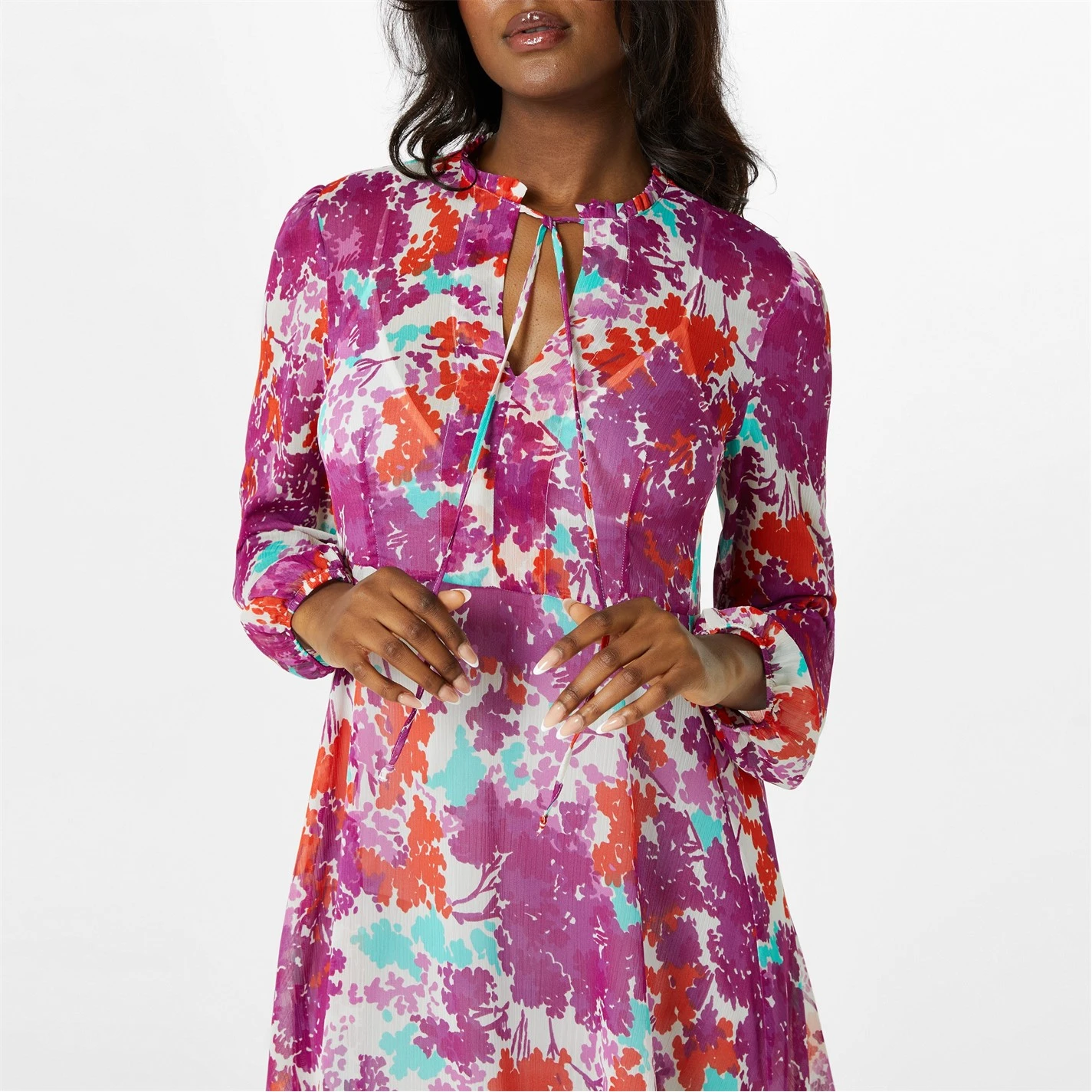 Refresh your summer dress collection with the Emme Banda Chiffon Dress, featuring a lightweight chiffon overdress with long sleeves, a tie fastening to the collar with ruffle detail and under dress offers a comfortable fit. An all over abstract style print gives stylish, summer vibes, completed with the Emme branding. Outer: 100% polyester, Lining: 100% polyamide. Machine washable, follow care label instructions.