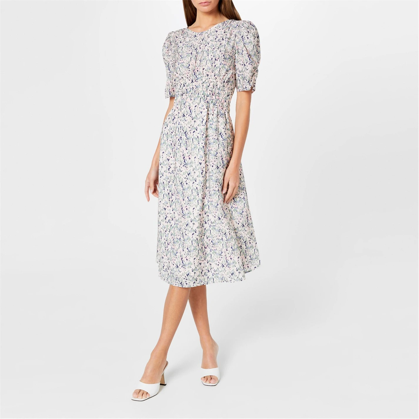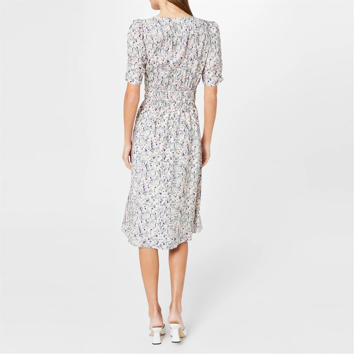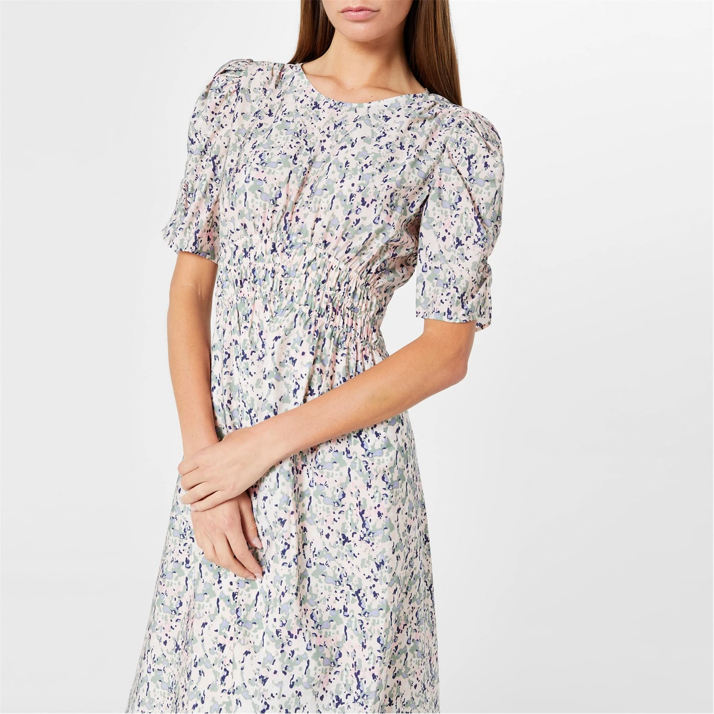 Elevate your Summer wardrobe with this Dizzi Tea Dress from BOSS. Elegantly constructed from a responsibly sourced lyocell blend composition, this piece is cut in a midi length regular fit and features a delicate crew neckline, puffed short sleeves, a buttoned keyhole fastening to the rear, an elasticated waistline and a inner slip skirt for comfort and modesty. The design is decorated in an arresting camouflage inspired print all over and is completed with the signature BOSS branding for a high-end finish. Fabric: 83% lyocell, 17% polyamide. Facing: 100% polyester. Hand Wash Only – always refer to and follow washing instructions for best wear.