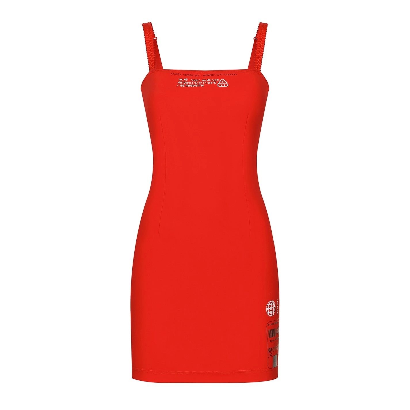 The perfect example of this audacious new proposition is this Stretch Jersey Dress, exquisitely crafted in a premium nylon blend. Meticulously cut in a mini-length silhouette, this striking design boasts a square neckline framed by adjustable shoulder straps and a concealed tonal zip fastening to the rear. Tailored darts on the front and rear offer a structured touch and evoke the label’s high-end sophistication. A straight hem and discreet tone-on-tone stitching complete the construction. The arresting block colouring provides an exceptional foundation to style this piece alongside any accessories, making it the focal point of any ensemble. Finally, no design in the collection is complete without the urban-inspired text and graphic prints on the front, left side, and rear to guarantee a playful finishing touch. External composition: 80% polyamide, 20% elastane. Please refer to and follow garment labelling for precise care instructions.