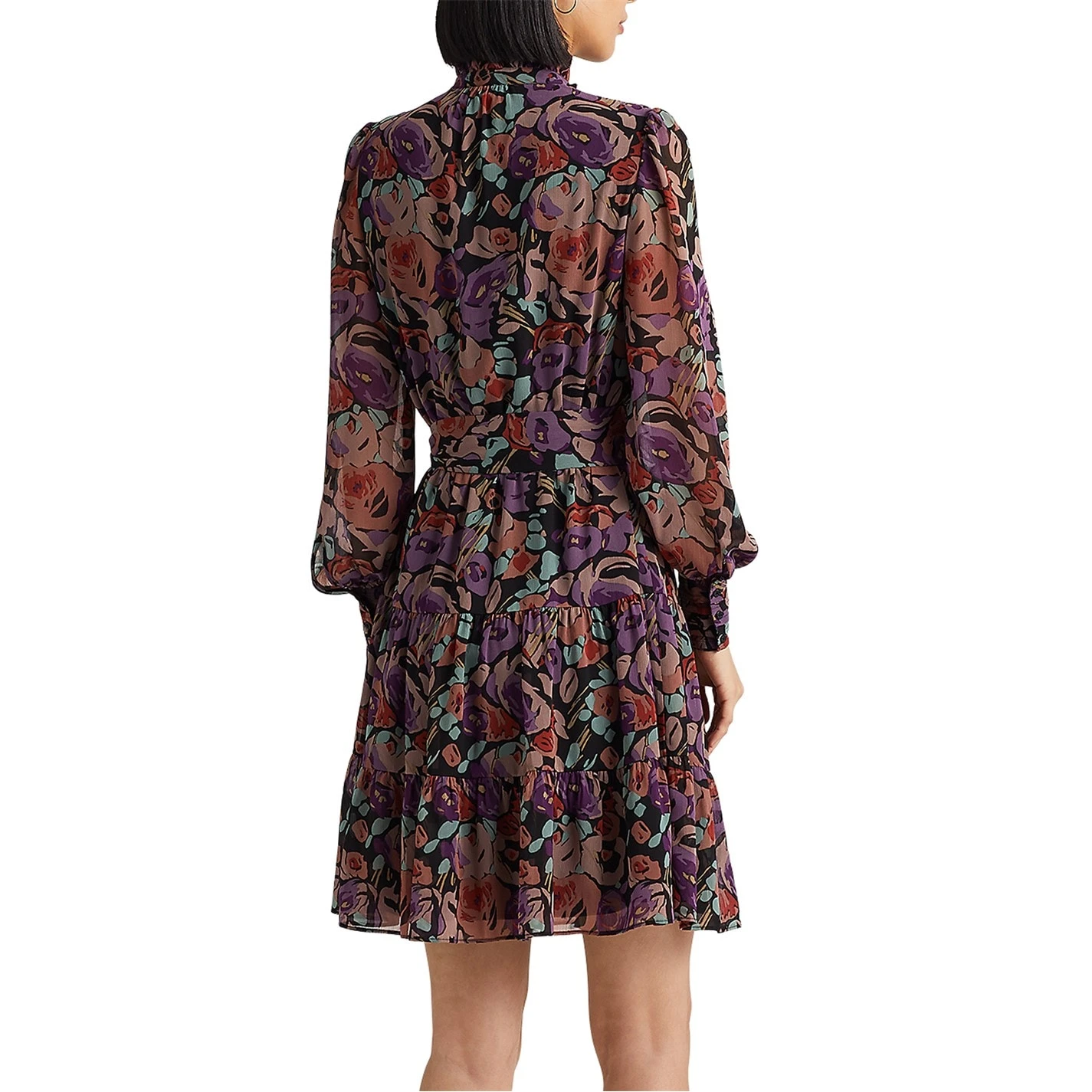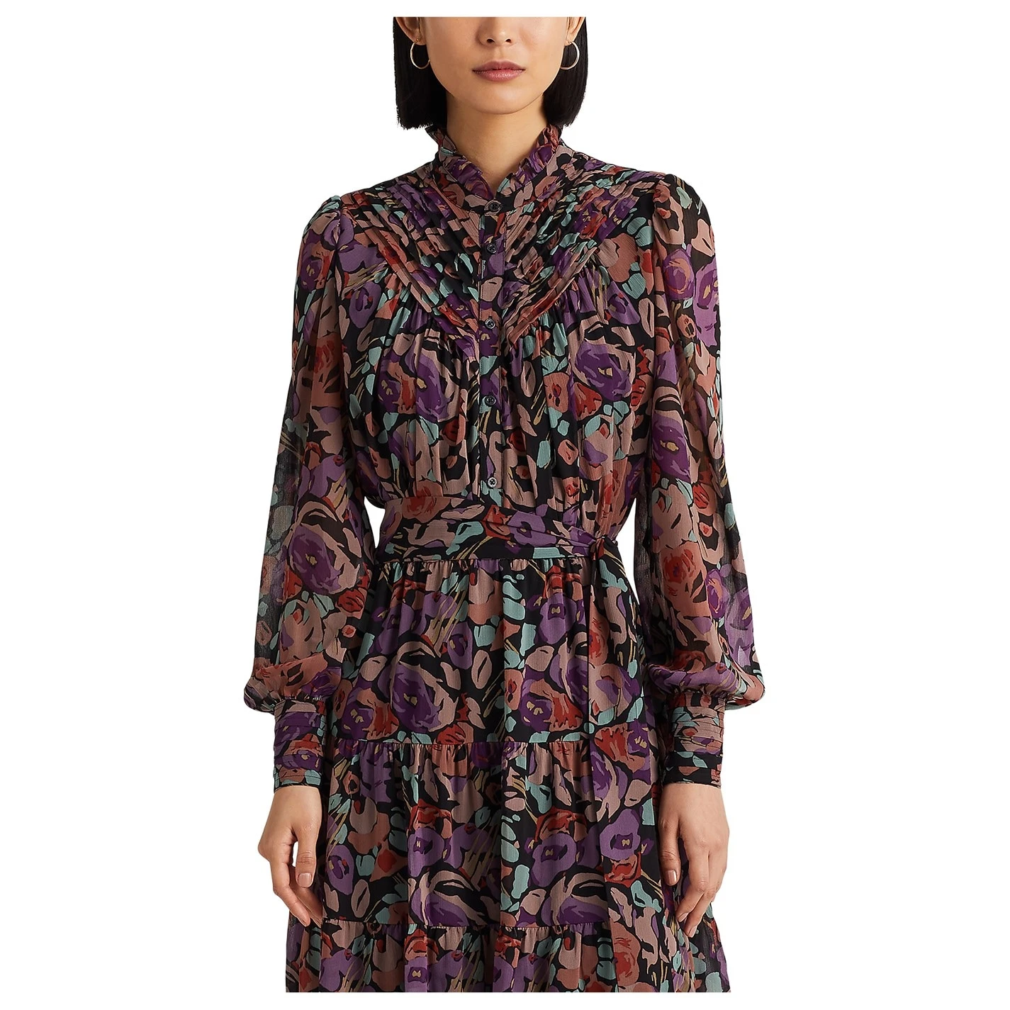 This floral motif dress by Lauren Ralph Lauren makes an elegant and versatile addition to your wardrobe. The dress has sophisticated details including vintage inspired blousen sleeves, a high neckline and a removable belt at the waist. The buttons have “Lauren Ralph Lauren” engraved lending a heritage-inspired touch, while pintucking at the shoulders provides subtle texture.