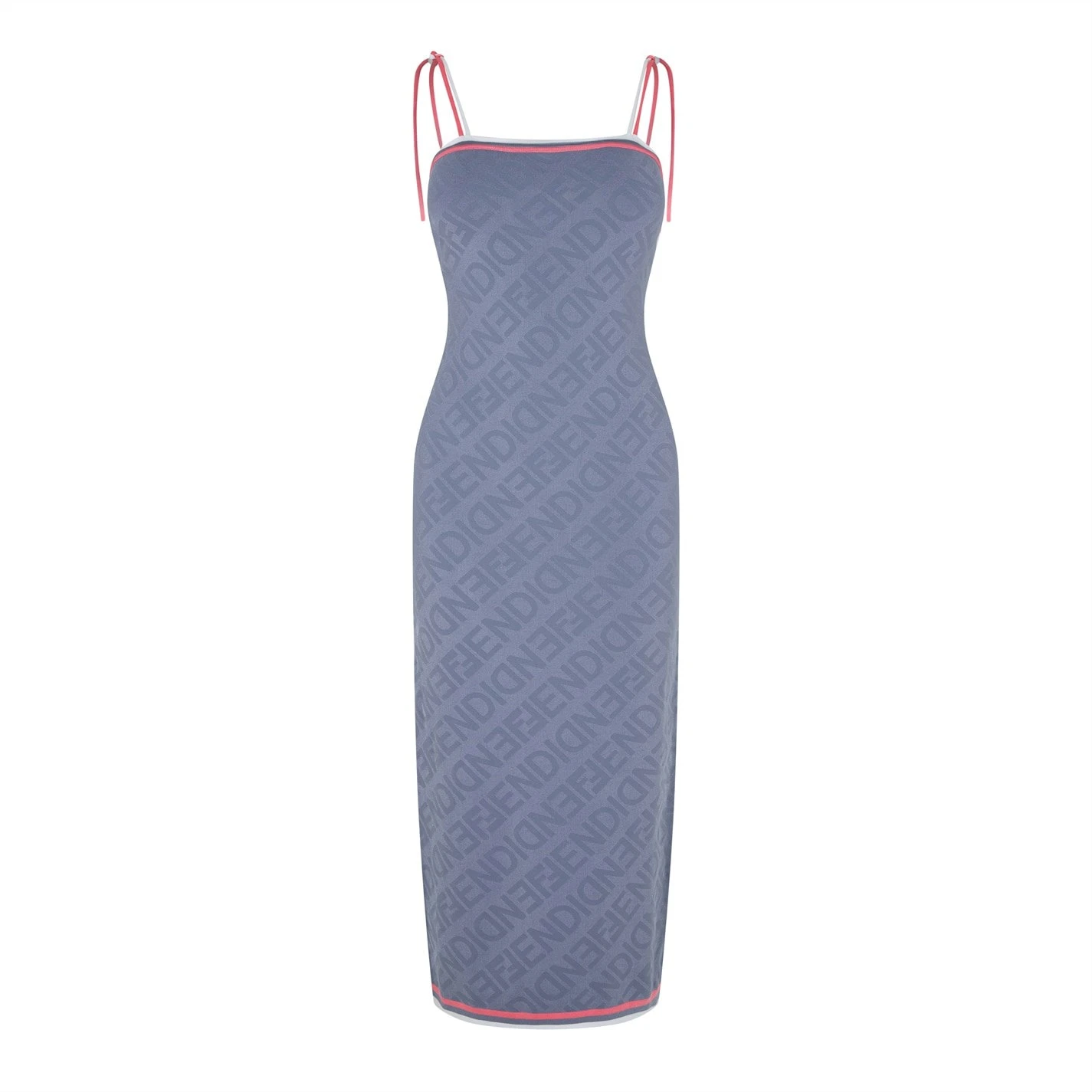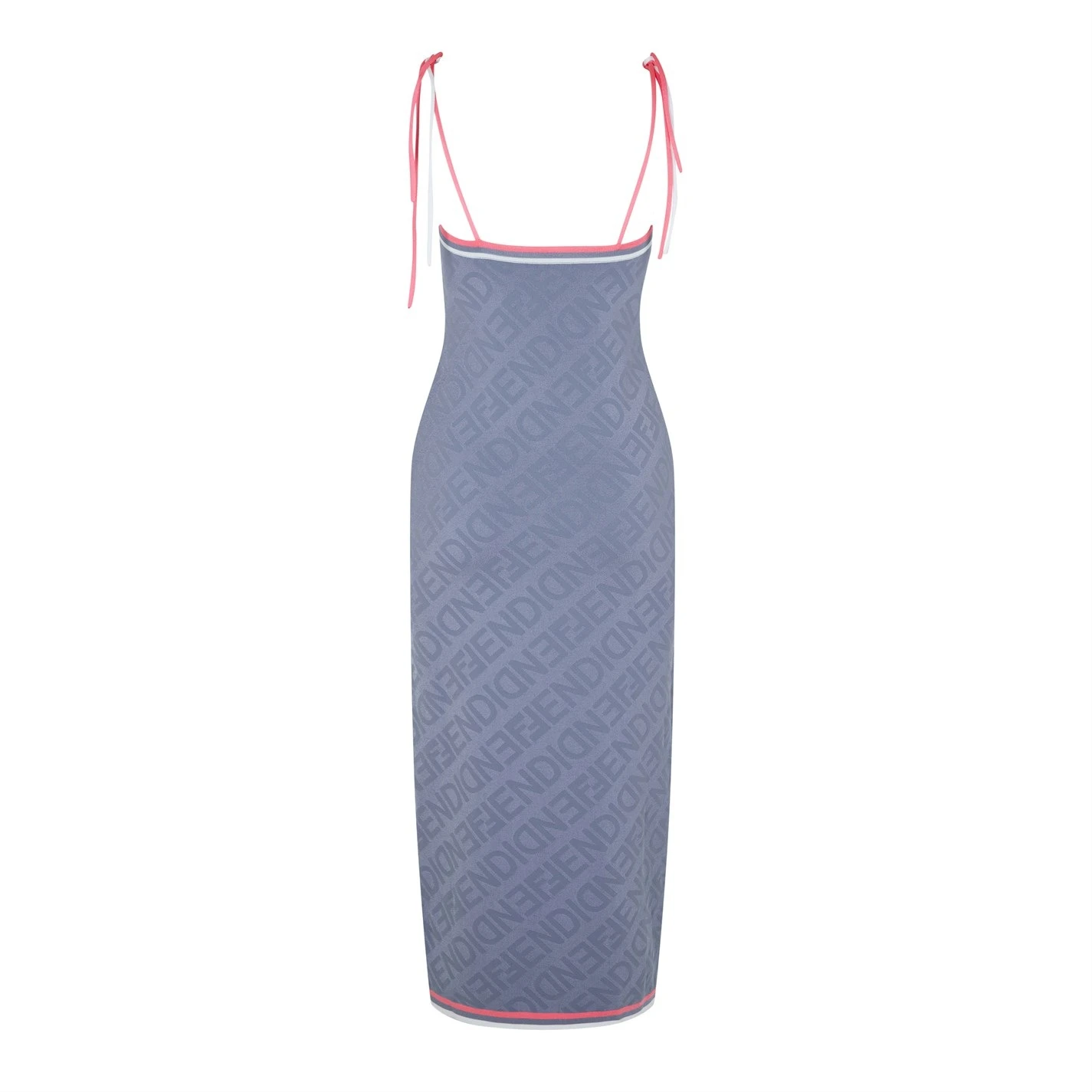 The all-over Fendi monogram in intarsia lends an unmistakable air of high-end exclusivity, while the contrasting rib-knit trims and double piping add a dash of modernity and sophistication to this timeless piece. Perfect for any occasion, from garden parties to formal affairs, this Monogram Maxi Dress radiates an effortless charm that complements your unique sense of style.