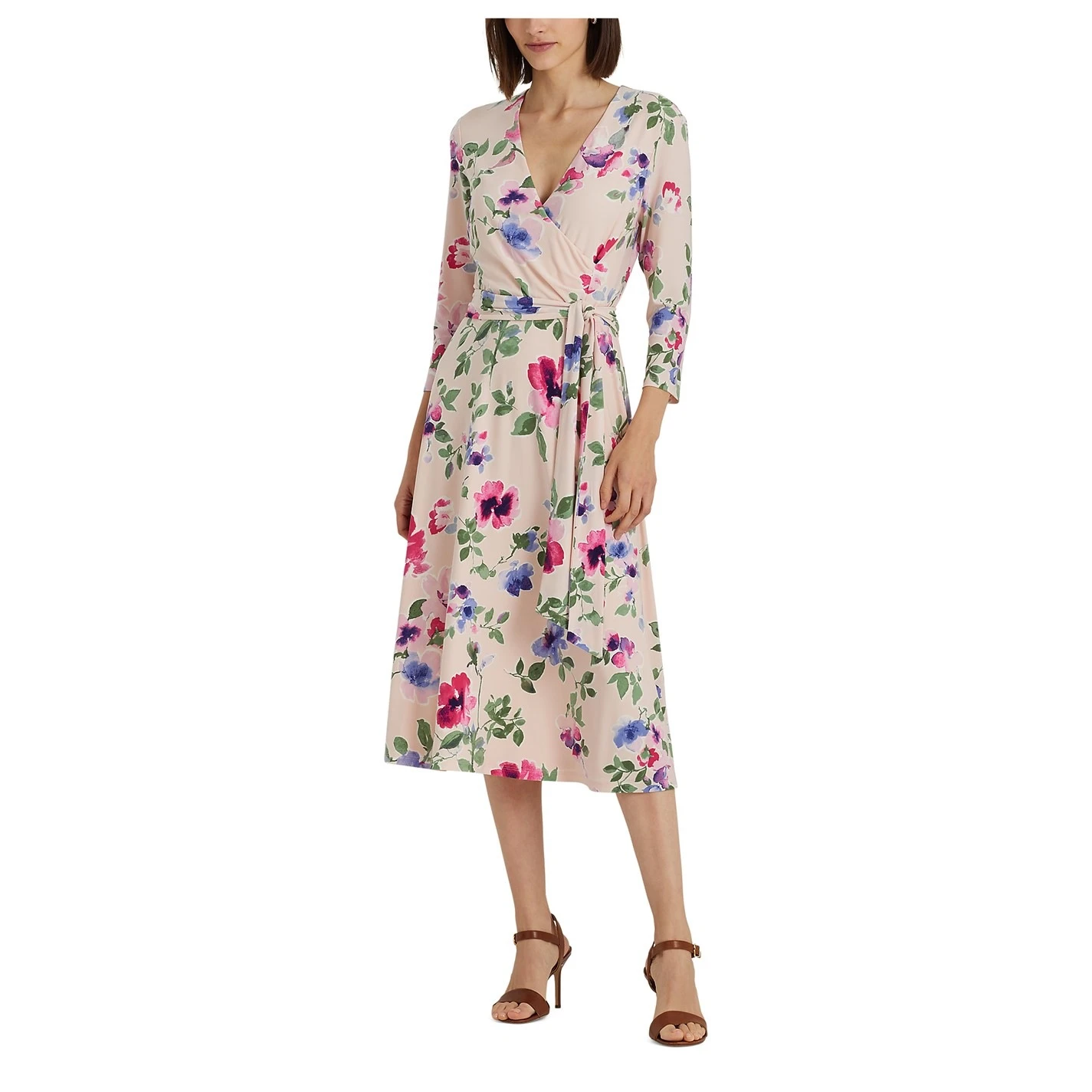 Lauren By Ralph Lauren Floral Surplice Jersey Dress