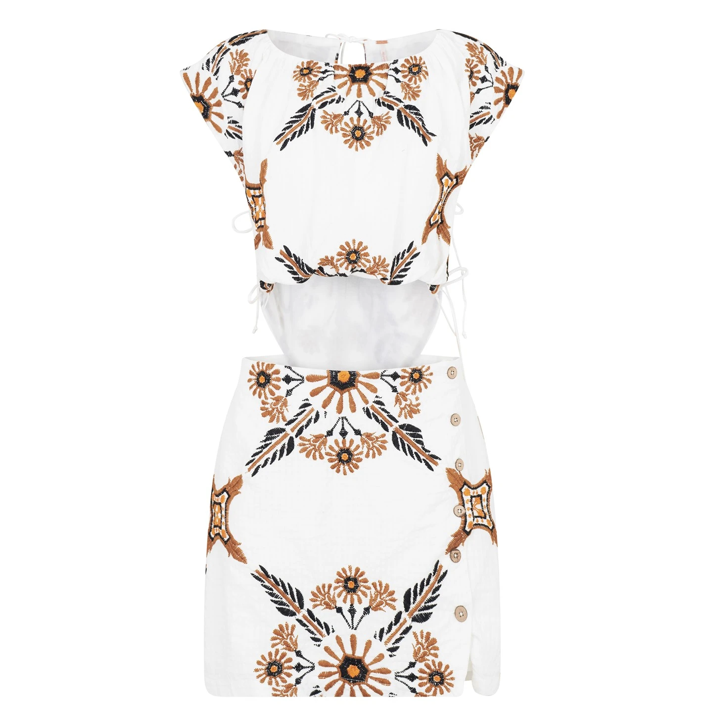 Revise your essential Mini Dress collection with this Sardina Mini Dress brought to you by Free People. Crafted from a soft Cotton blend, this crew neck, sleeveless, mini dress styles a classic tiered silhouette tiered with woven detailing all over and a unique floral print.