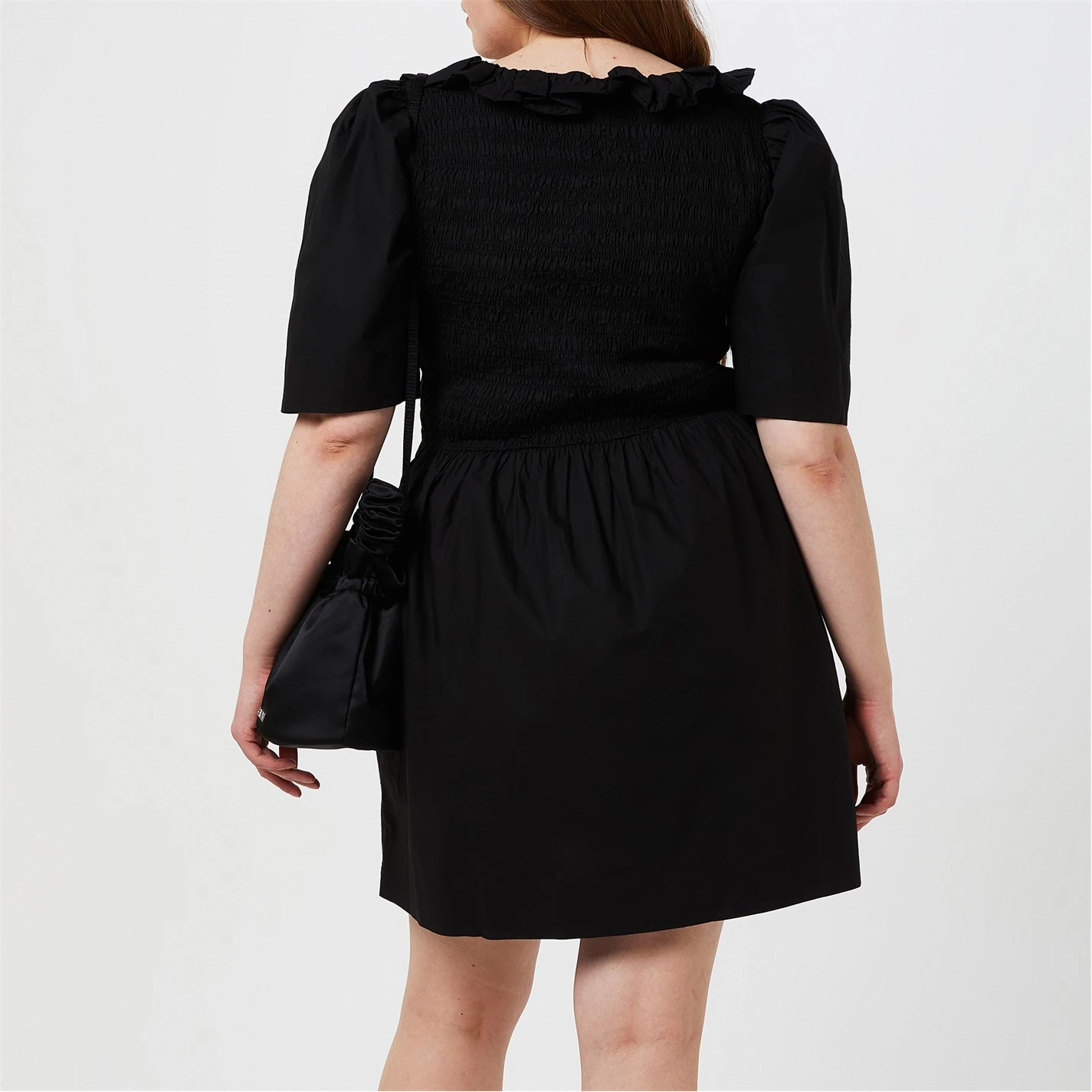 Known for their expressive and tailored ready-to-wear collections, GANNI‘s Smock Mini Dress is the perfect encapsulation of the brand’s vision. Crafted in a responsibly sourced organic cotton poplin, this Scandi-inspired piece features a deep scoop neck, a smocked bodice, an A-line hemline and elbow length sleeves. Decorated in a solid block colour throughout, this arresting piece is defined by ruffled detailing to the collar for a dramatic finishing touch to this wardrobe staple. Always refer to and follow garment labelling for care instructions and best wear.