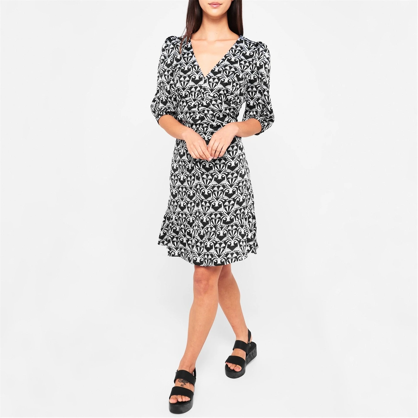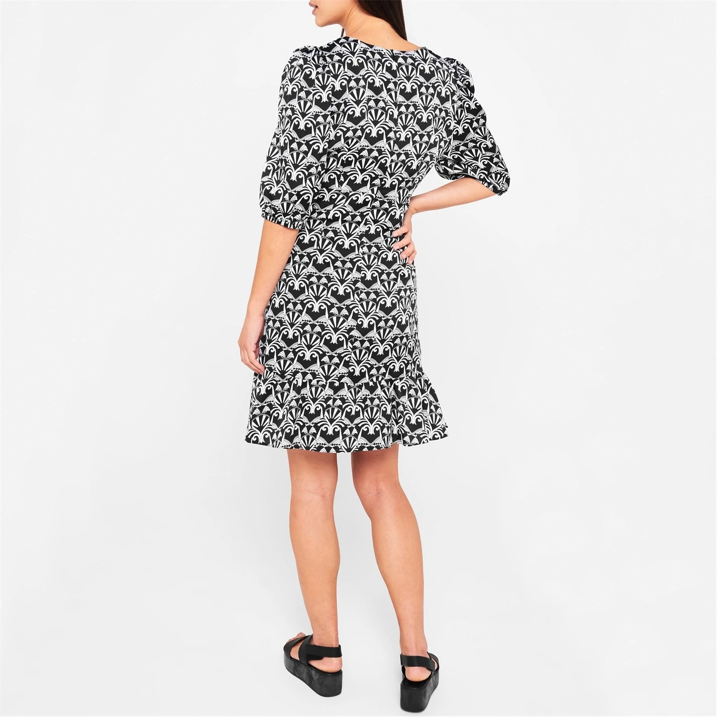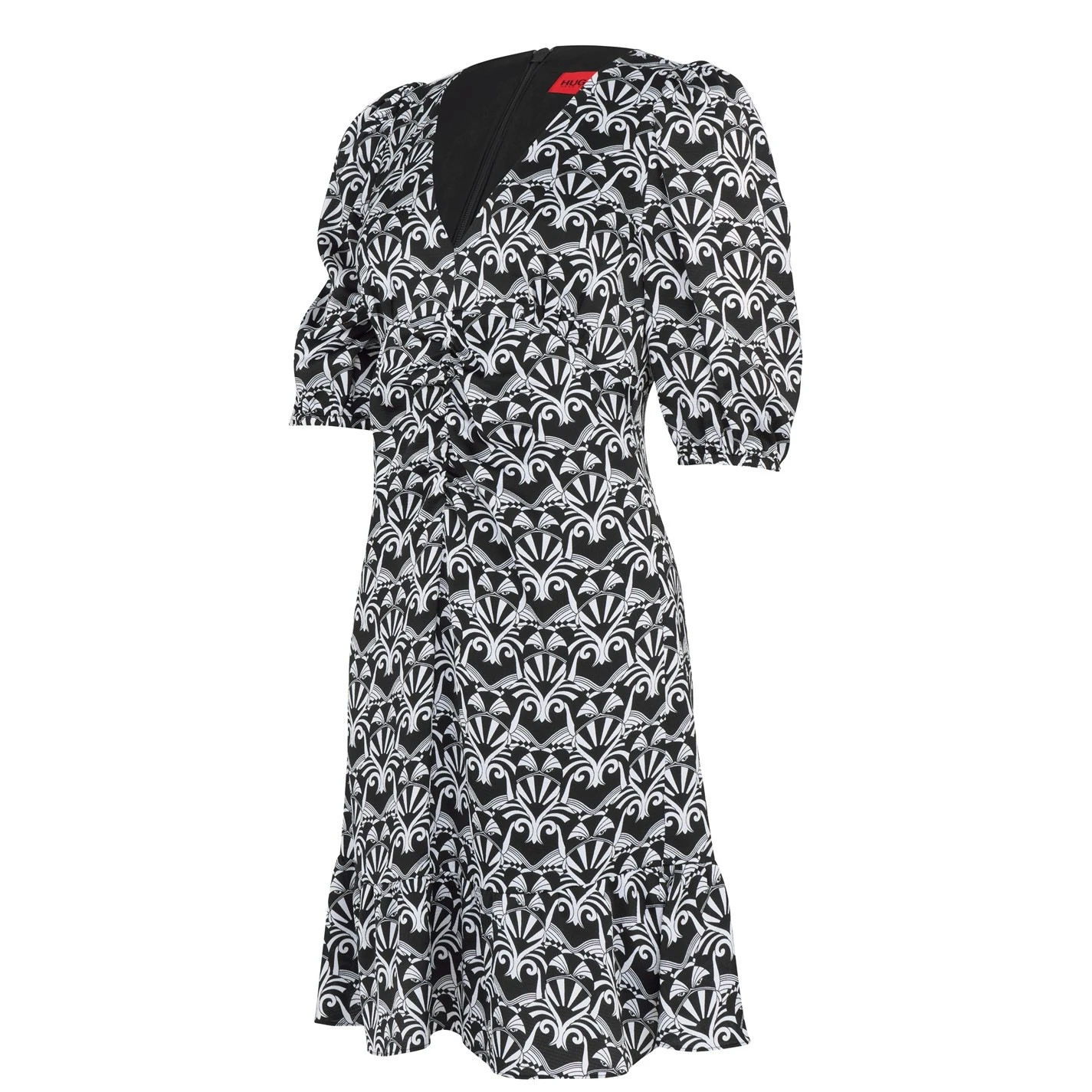 Crafted from a soft and lightweight Polyester fabrication, this mini length dress styles an all-over monochromatic print cut with a v-neckline and elbow-length sleeves for a versatile day-to-evening look. Secured with a rear zip fastening, this fully lined dress is perfect to style with boots and a leather jacket.