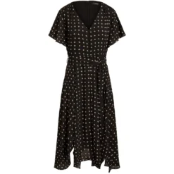 The Lauren By Ralph Lauren Kangani Dress is a true embodiment of elegance and sophistication. This exquisite dress, constructed with a full polyester canvas, embraces the season’s dainty geometric motif, imbuing it with a touch of modern charm. Its airy crepe fabrication and curved handkerchief hem create graceful movement with each step, adding an ethereal quality to your presence. The flutter sleeves, delicately fluttering in the breeze, infuse the dress with a whimsical allure, while the self-belt cinches the waist, accentuating your natural beauty. The A-line silhouette and mid-calf length ensure a flattering fit for all body types, while the V-neck and button-and-loop placket exude refined femininity. With threaded belt loops and a removable self-belt, dear friend, you have the freedom to tailor this masterpiece to your personal style. Machine washable, follow care instructions.