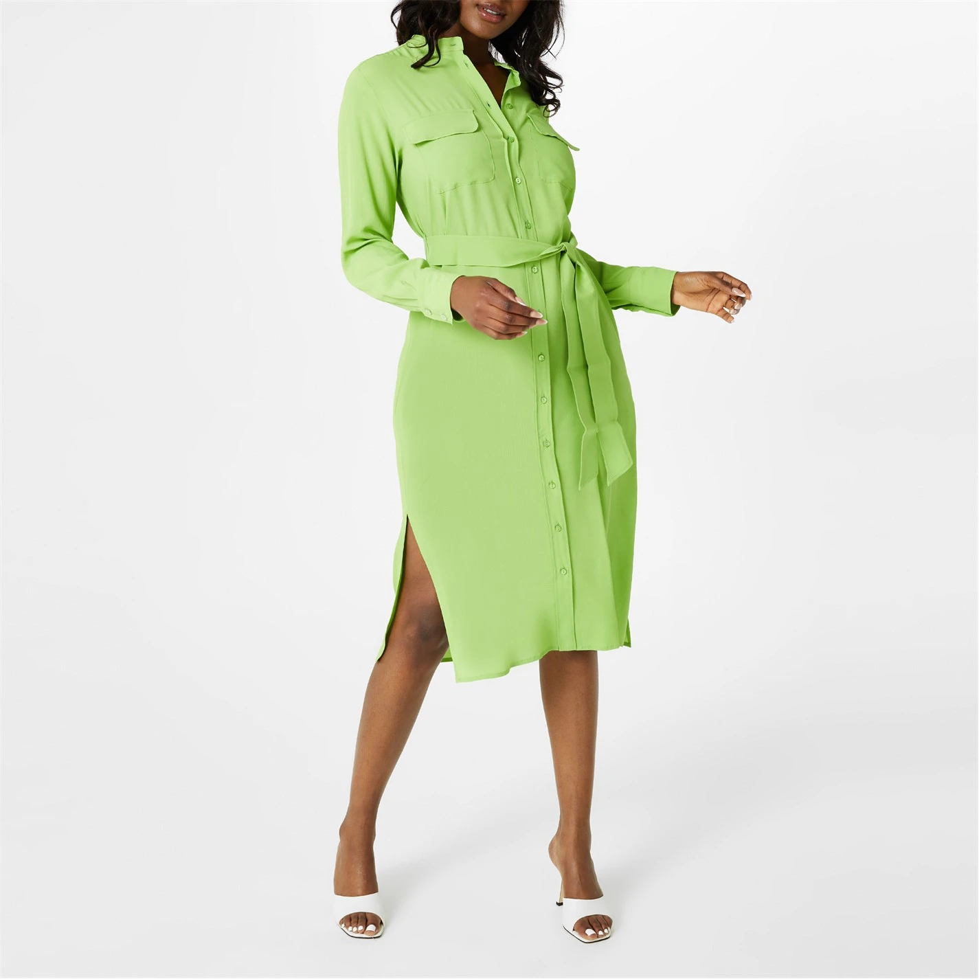 Elevate your wardrobe with the Oporto Shirt Dress brought to you by Marella. Crafted in a luxe silk blend composition with a crepe de chine finish, the piece is designed in a shirt dress style with a full length button fastening, long cuffed sleeves, a band collar and twin pockets to the chest for a utilitarian aesthetic. Featuring a side slit detail, the piece is finished with a matching belt to enhance the figure and complete the style. Material: 69% acetate, 31% silk. Care: Hand wash cold / dry clean only.