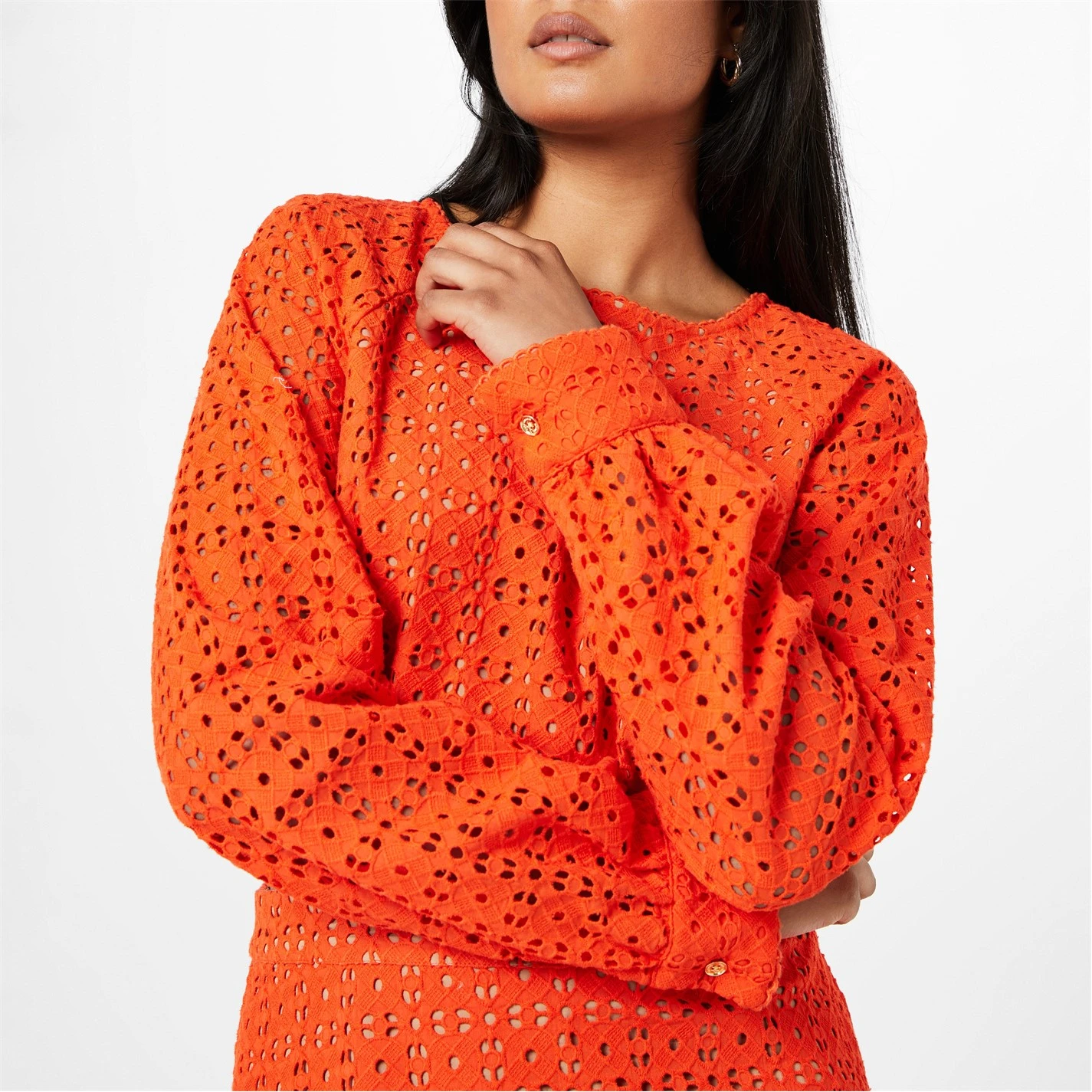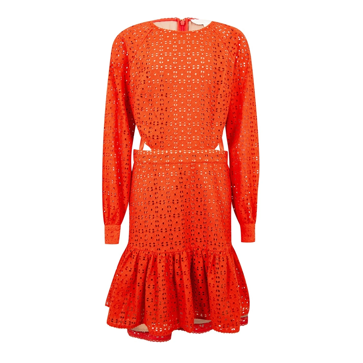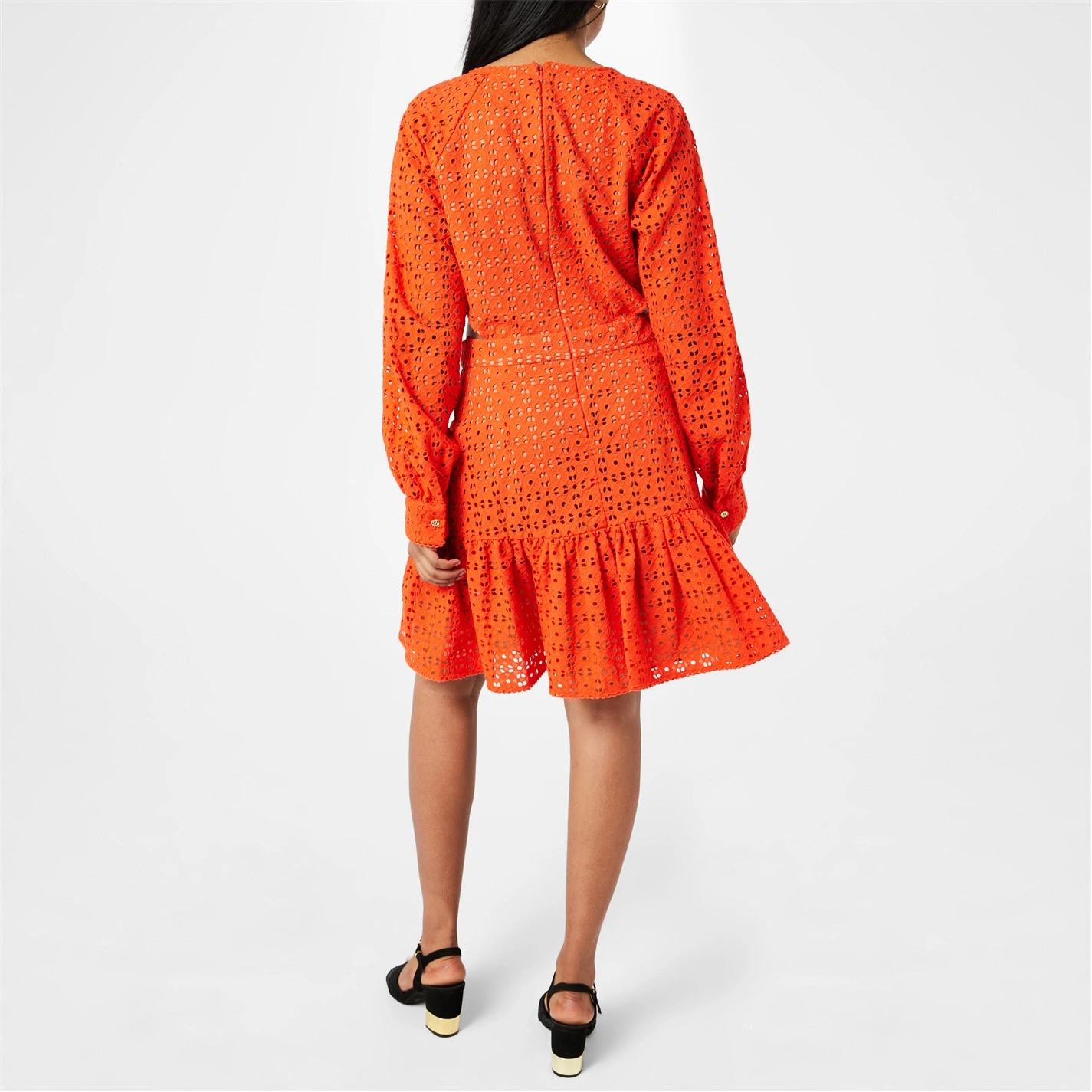 Introducing the exquisite Michael Kors Eyelet Dress, a piece that effortlessly combines timeless elegance with a contemporary edge. This straight cut dress features a sophisticated crew neck and is thoughtfully closed with an invisible zipper at the back, ensuring a seamless and polished silhouette from every angle. The long sleeves add a touch of refinement, while the delicate side cut-outs bring a hint of modern allure to this classic design. Crafted with meticulous attention to detail, the dress is fully lined for utmost comfort and boasts an enchanting all-over lace pattern. As for its influences, this stunning creation draws inspiration from the brand’s rich heritage and its commitment to accessible luxury. Machine washable, follow care instructions.