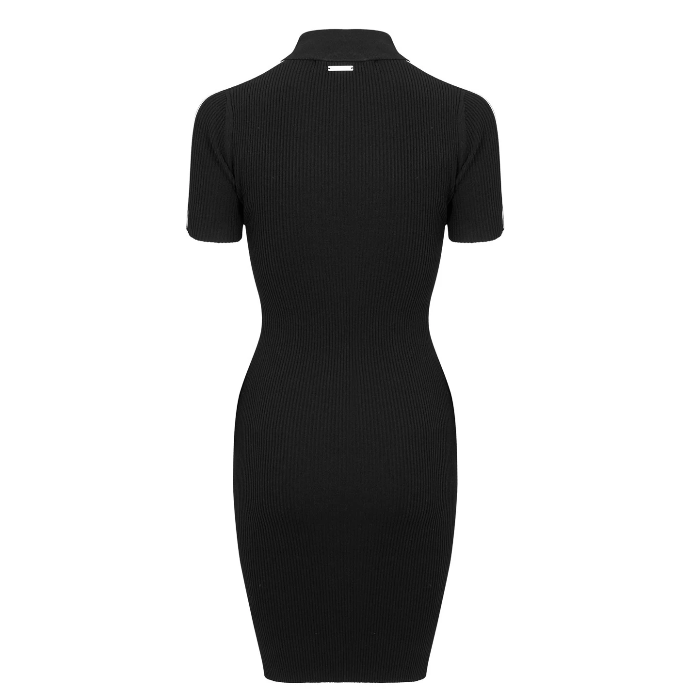 Give your wardrobe a sporty update with this Ribbed Logo Tape Sweater Dress from MICHAEL Michael Kors. Elegance and function combine in this recycled polyester blend midi-dress that features an all over ribbed knit, half-zip funnel neck, short sleeves and a straight hem. Decorated in a solid colour way, the design is elevated by the Michael Kors logo affixed to the shoulder tape and the half zip fastening. Pair with chunky trainers for the ultimate athleisure look. Fabric: 63% recycled viscose, 19% nylon, 15% polyester, 3% elastane. Side panel: 82% recycled viscose, 18% polyester. Machine washable inside out at 30 degrees.
