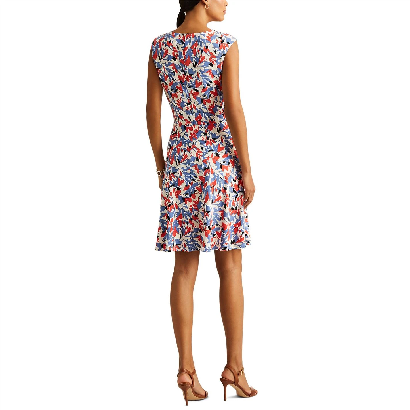 Add some vibrancy to your wardrobe with the Miralavia Dress from Lauren by Ralph Lauren. Crafted with a stretchable, soft polyester material in a fit and flare silhouette, this knee length piece features a scoop neck, short sleeves, a concealed centre back zip and a twist-knot detail at the waist, which contributes to the pieces flowing aesthetic. Whilst decorated in an elegant solid colouring throughout, the dress is completed with the Ralph Lauren branding for a premium finish.