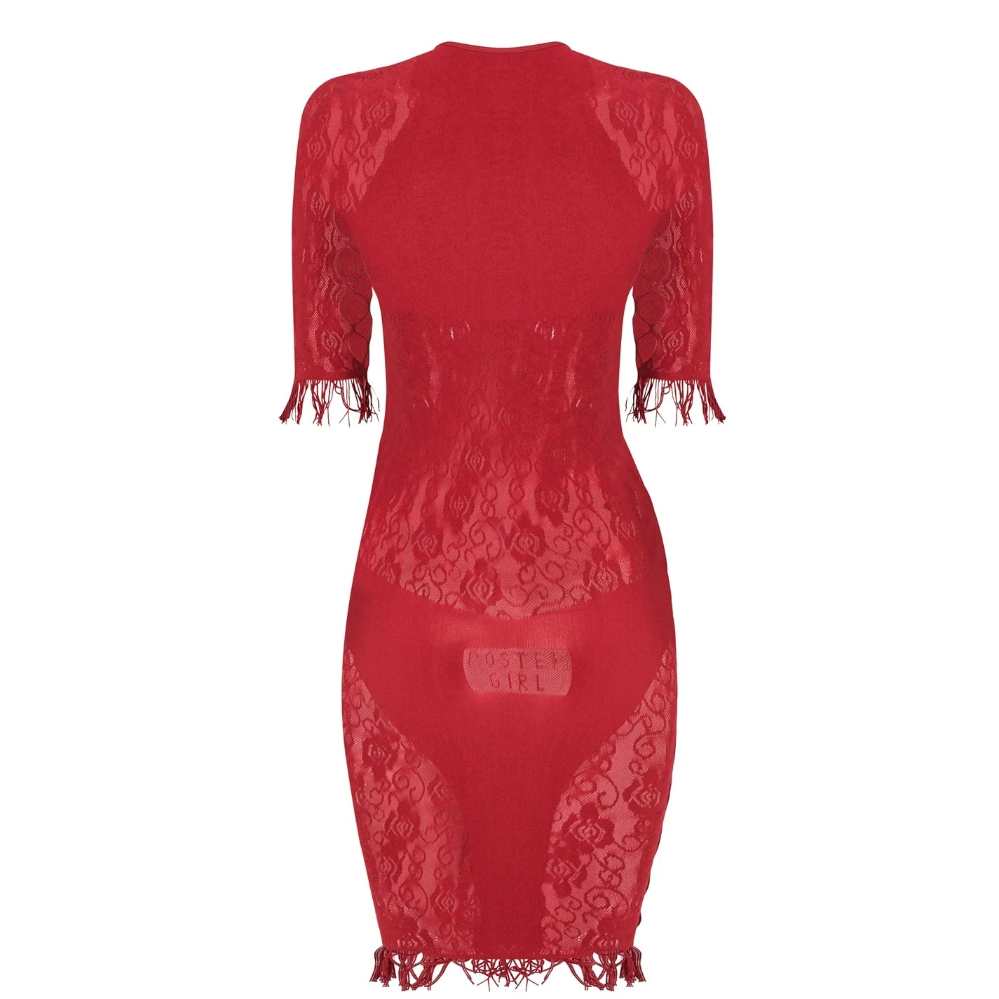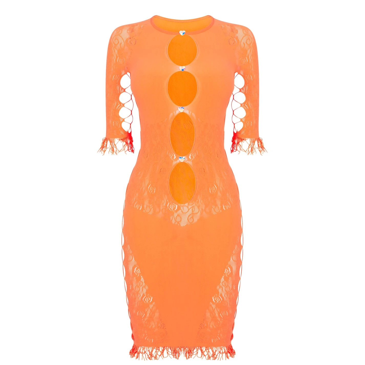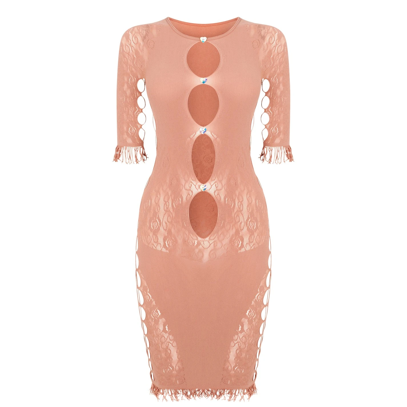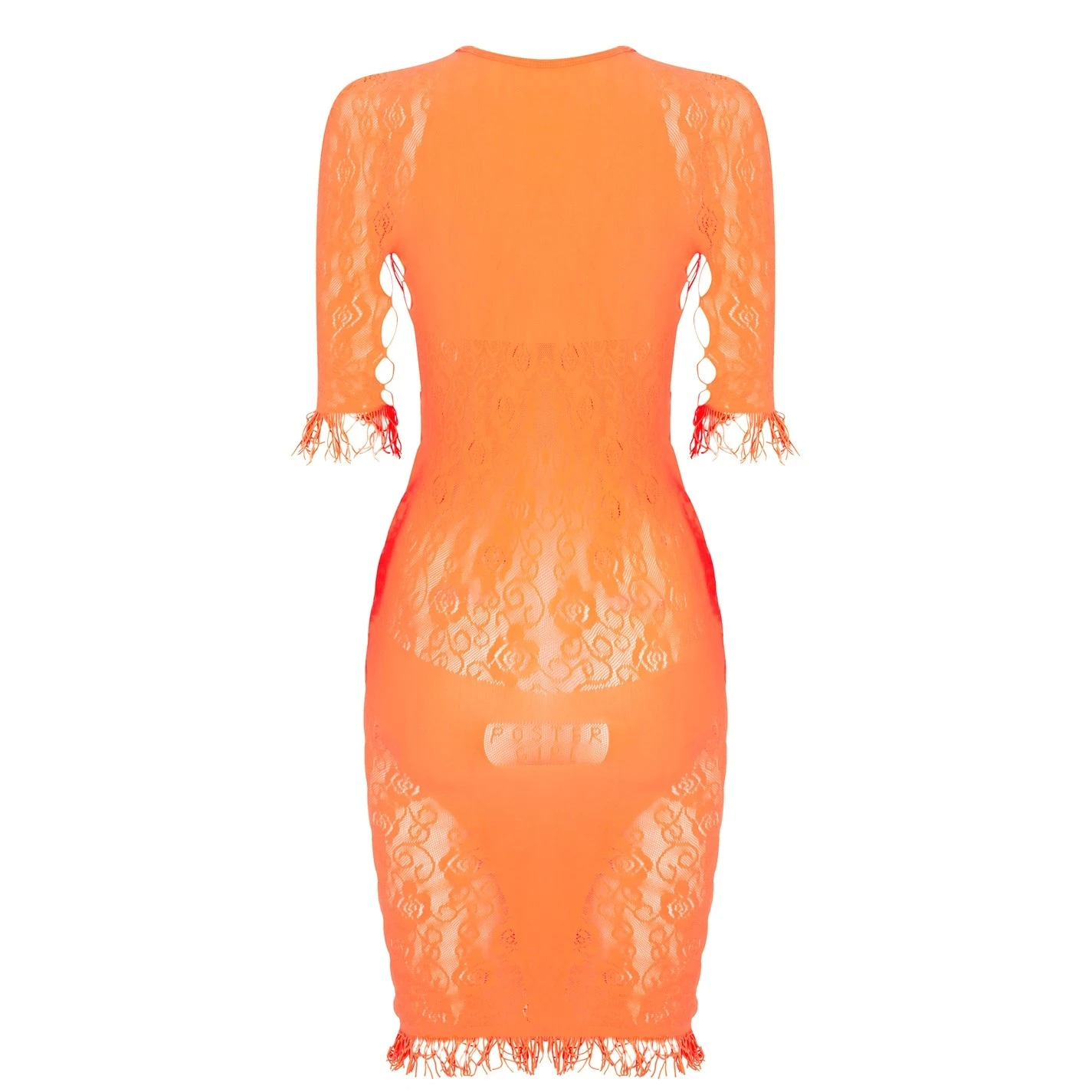 As seen on ultra-influential individuals on social media, the Miranda Dress from Poster Girl is an feminine piece that takes your night out attire to the next level. Featuring psychedelic swirl lace’ fabric cut outs from a stretch polyamide mix, this midi length silhouette features cut out details to the chest embellished with crystal heart detailing and a tassel hemline. Finsihed with a scoop neckline and quarter length sleeves, this dress is perfect to pair with mules and a small clutch bag.