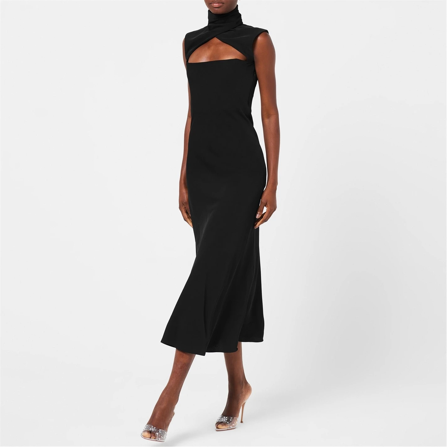 Invest in your evening attire with the Odessa Sleeveless Dress by 16 Arlington. A crepe construction with a high neckline and cut out detailing at the bust. The midi length flared skirt and black block colouring completes the stylish design.