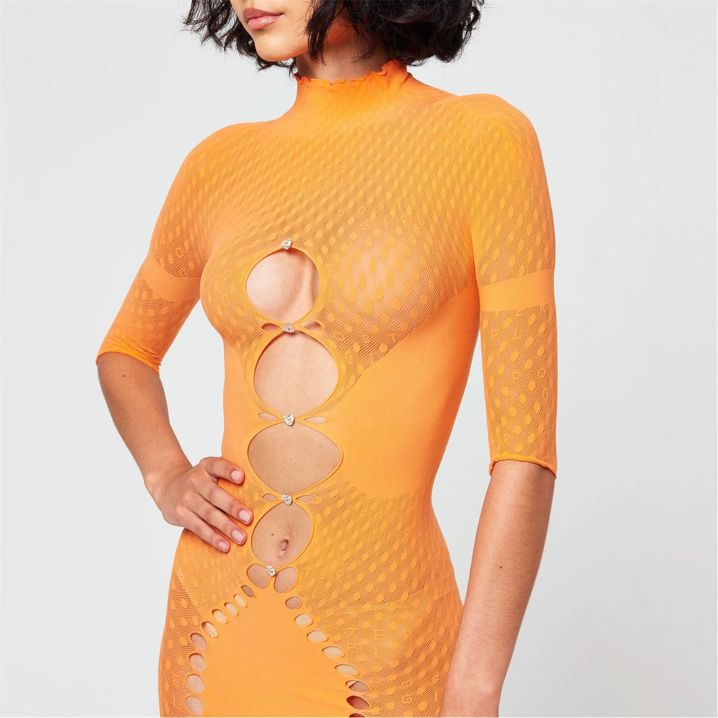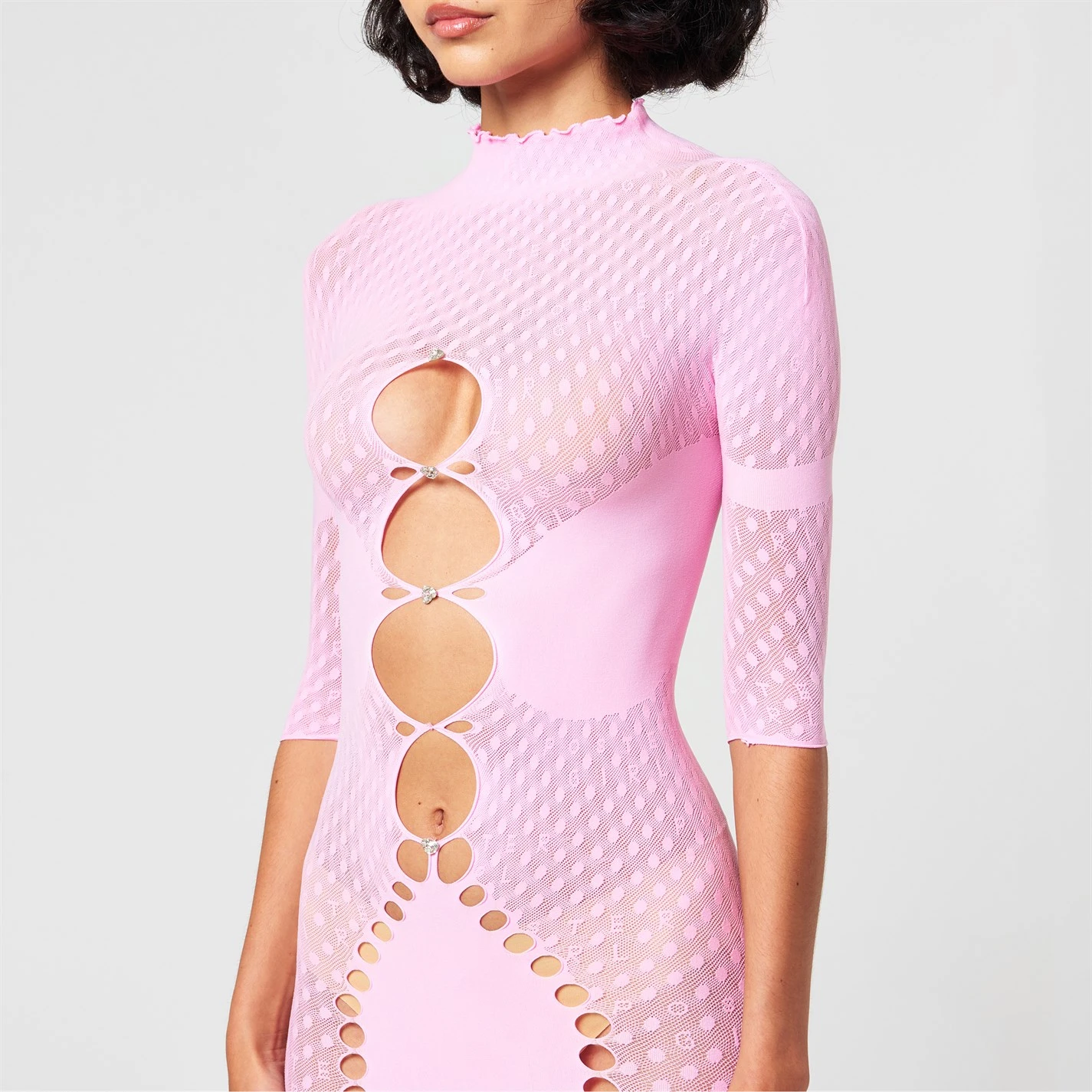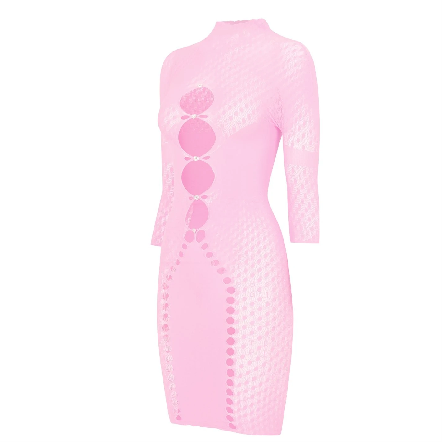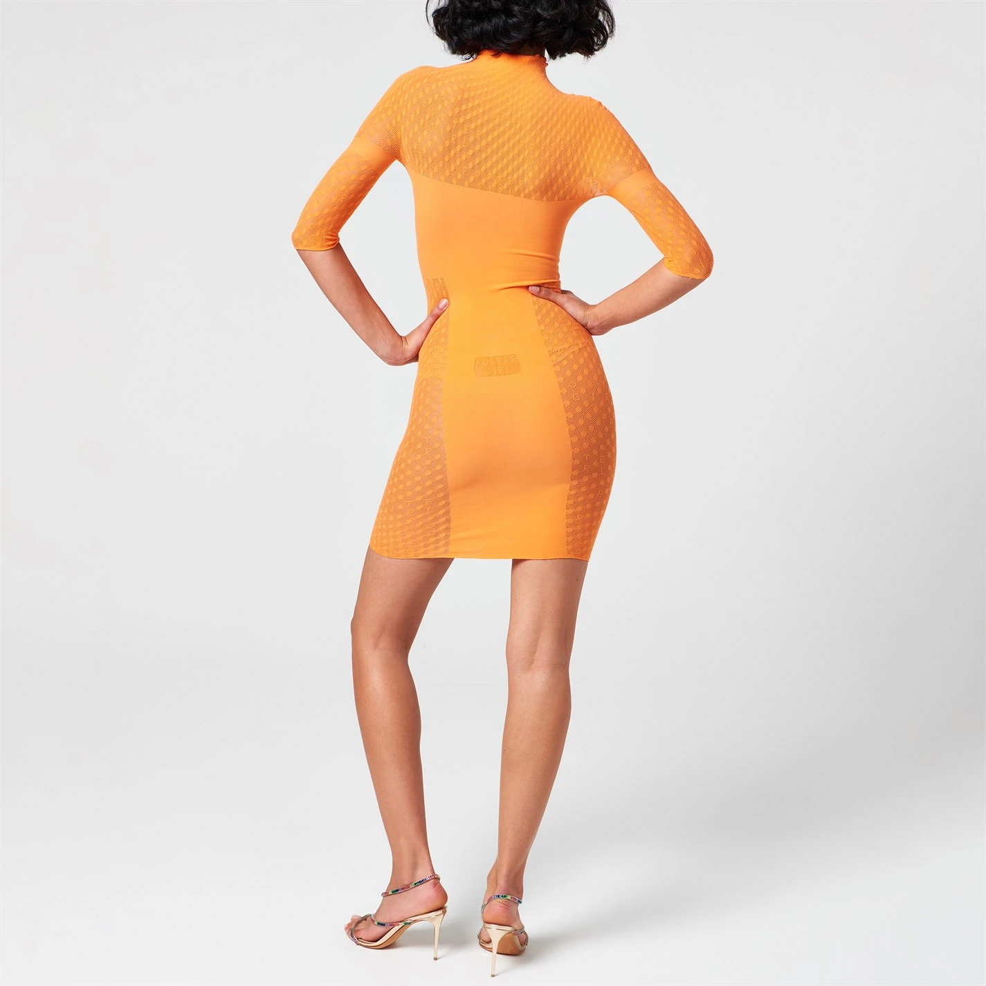 Add a unique and urbanised twist to your dress collection with the Pandora Dress brought to you by Poster Girl. Crafted with a stretch construction with three quarter length sleeves and a mock collar, a woven circular pattern to the main body gives a fun and playful style. Styling a midi length fit with bodycon fit for a flattering, figure hugging finish.