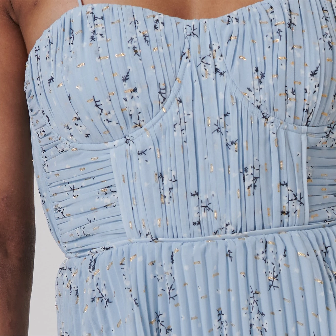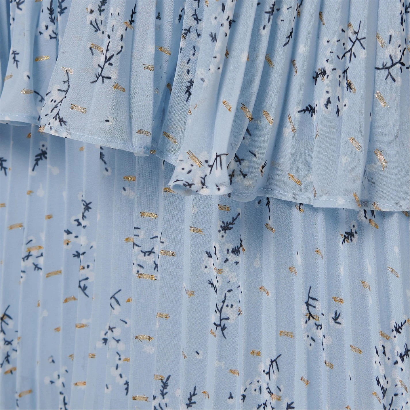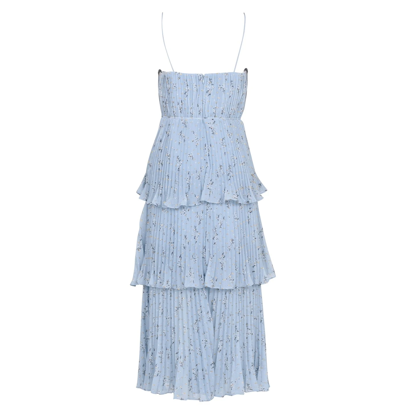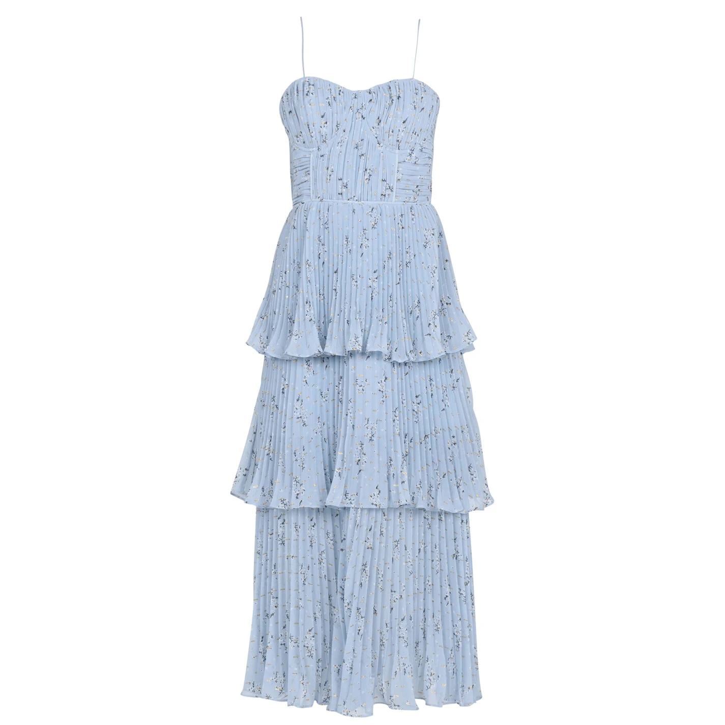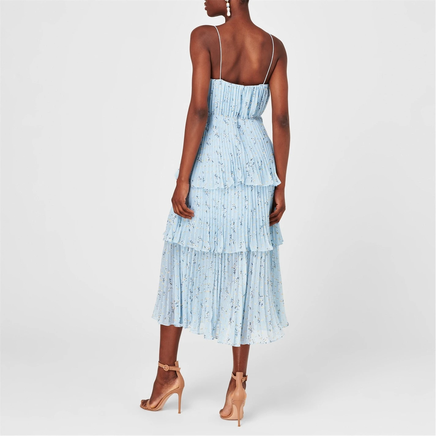 Elevate your dress collection and get ready for summer evening parties with this stunning Metallic Floral Tiered Midi Dress from Self Portrait, crafted from thin and lightweight materials for a summery style and a comfortable feel. The dress features thin shoulder straps for an elegant upper look, sitting above the ribbed chest which flows down into the three-tiered skirt which is pleated for a flowy look. The design feature metallic elements as part of the all-over floral pattern.