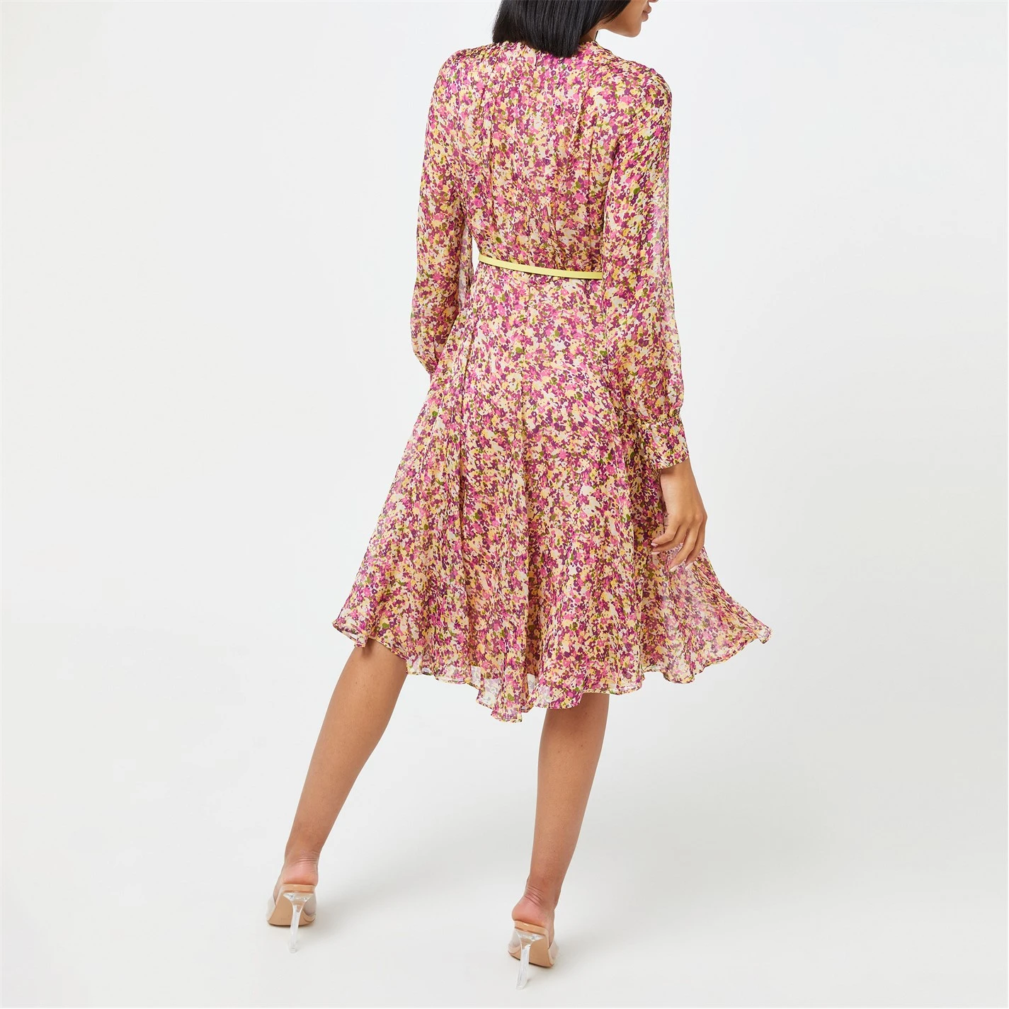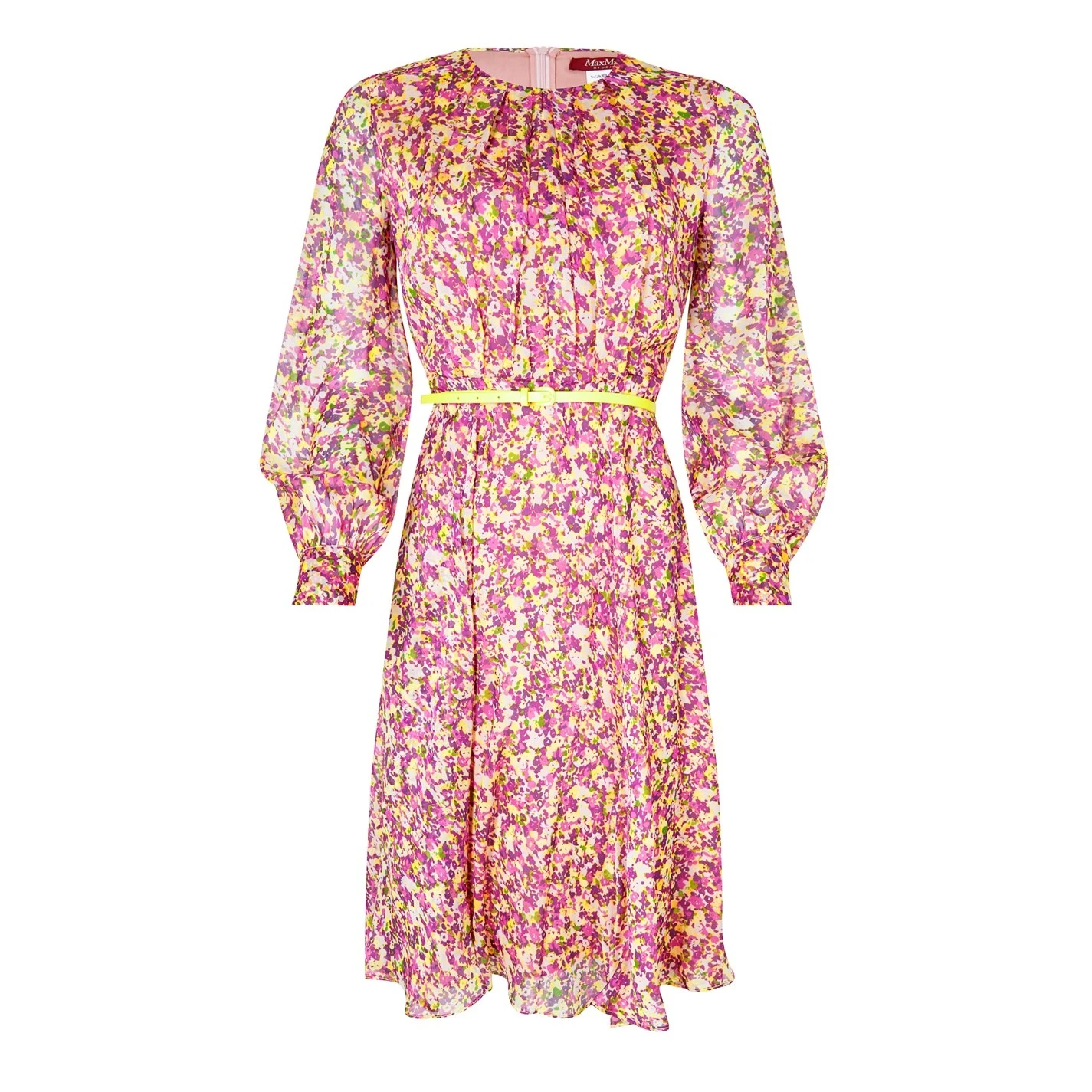 Embody the season in this Max Mara dress. Constructed from 100% silk this piece emanates the lightweight breeze of spring whilst also feeling luxurious .The all over floral print creates a feminine touch whilst the mini length adds a sultry edge. The flowing sleeves and cascading hem add a bohemian touch whilst the belt feature makes for a formal feel.