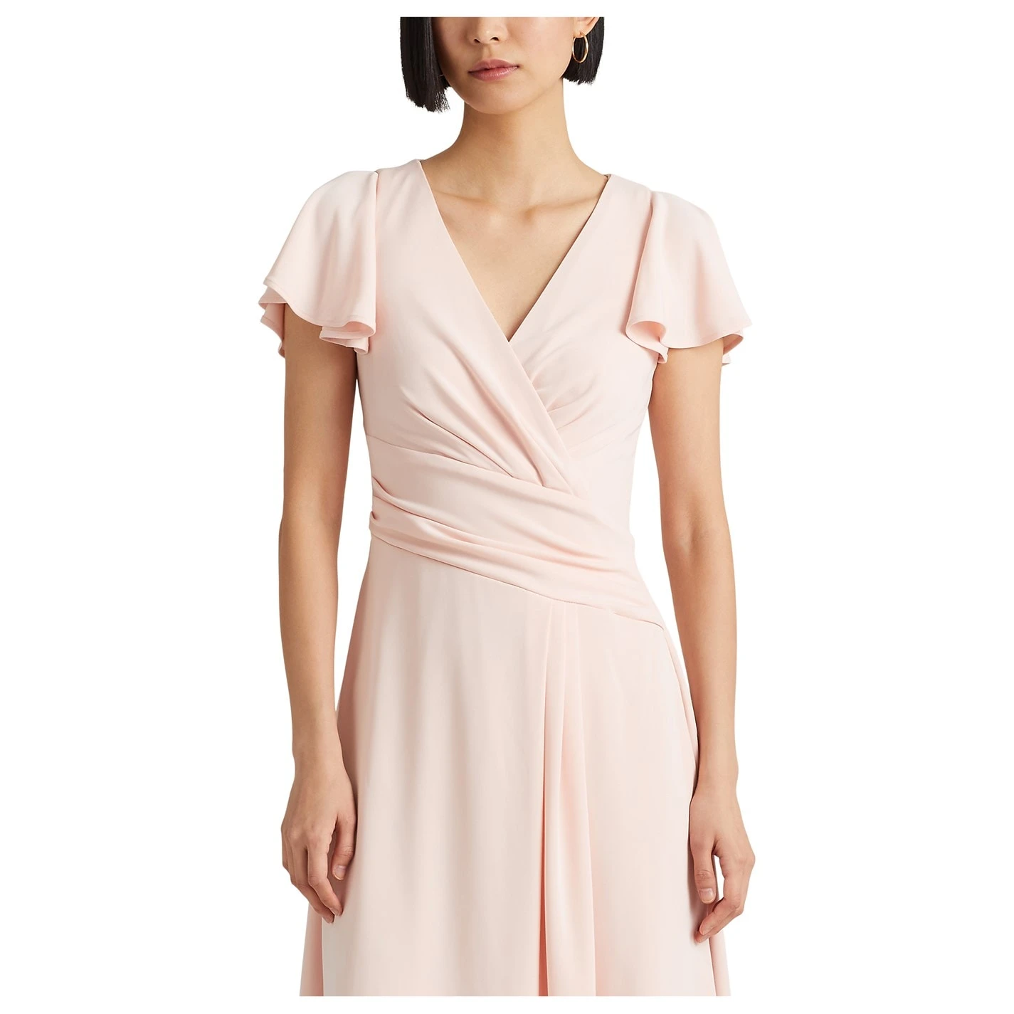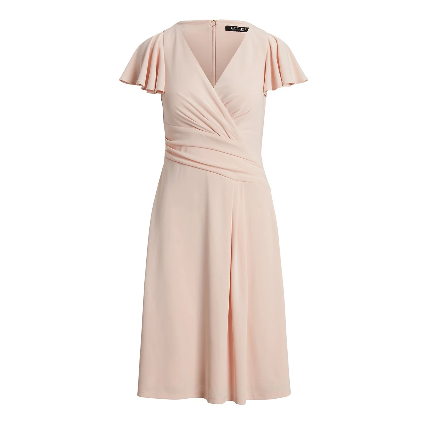 An elegant essential that can easily be dressed up or down, this surplice dress is defined by whimsical flutter sleeves and a figure-flattering pleated bodice. Cut for a knee-grazing silhouette, it’s rendered in stretch-infused jersey for a soft hand.