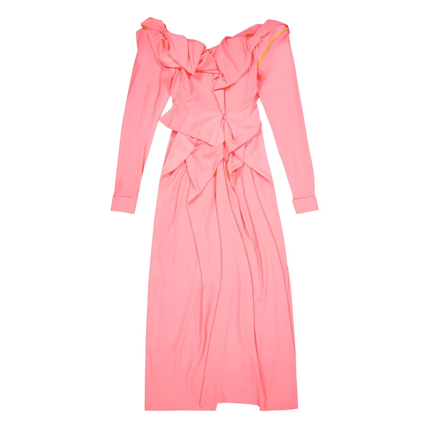 Renowned for fusing punk-inspired edge with effortless elegance the Vivienne Westwood brand has become synonymous with highly coveted designs, exquisitely expressed in this Drunken Long Sleeve Corset Dress. Intricately crafted from a sumptuous crepe de chine construction, using 100% polyester for a luxuriously lightweight appeal that is both sophisticated and striking with its eye-catching elements effortlessly elevating your evening ensemble. Framed with long sleeves for a touch of vintage glamour this maxi-length dress boasts all the distinctive hallmarks of the Westwood brand such as its corset style, fully boned torso with draped bust with matching asymmetric skirt at the front and back with slits to create a captivating silhouette that cascades over the contours of your frame.